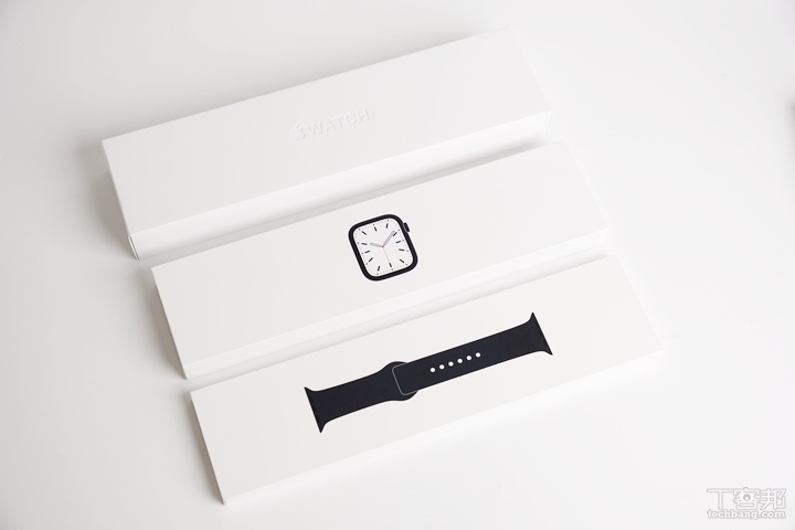 Apple Watch Series 7 的包裝和上一代相比耗材沒有太大的縮減,一樣是以白色的包裝盒裝著手錶本體以及錶帶。